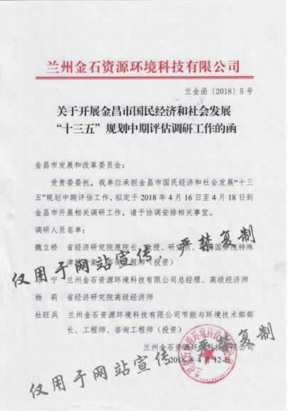 受金昌市發展和改革委員會委托,我單位承擔金昌市國民經濟和社會發展“十三五”規劃中期評估工作。2018年4月16日,我公司安排人員前往金昌各縣區開展調研。