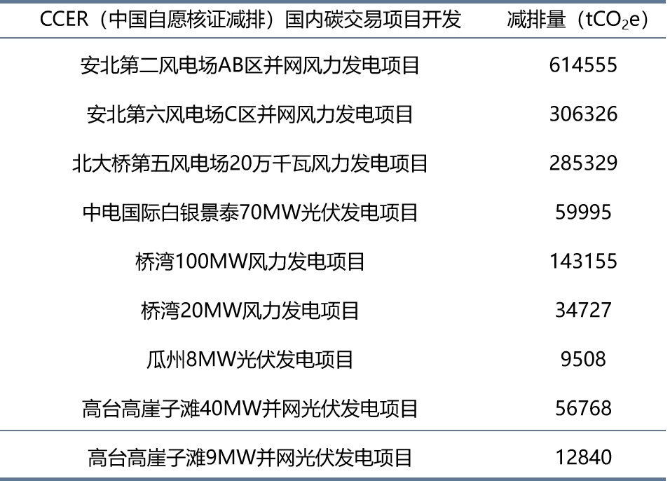 CCER項目20多項,主要涉及風電、光電等新能源領域。
