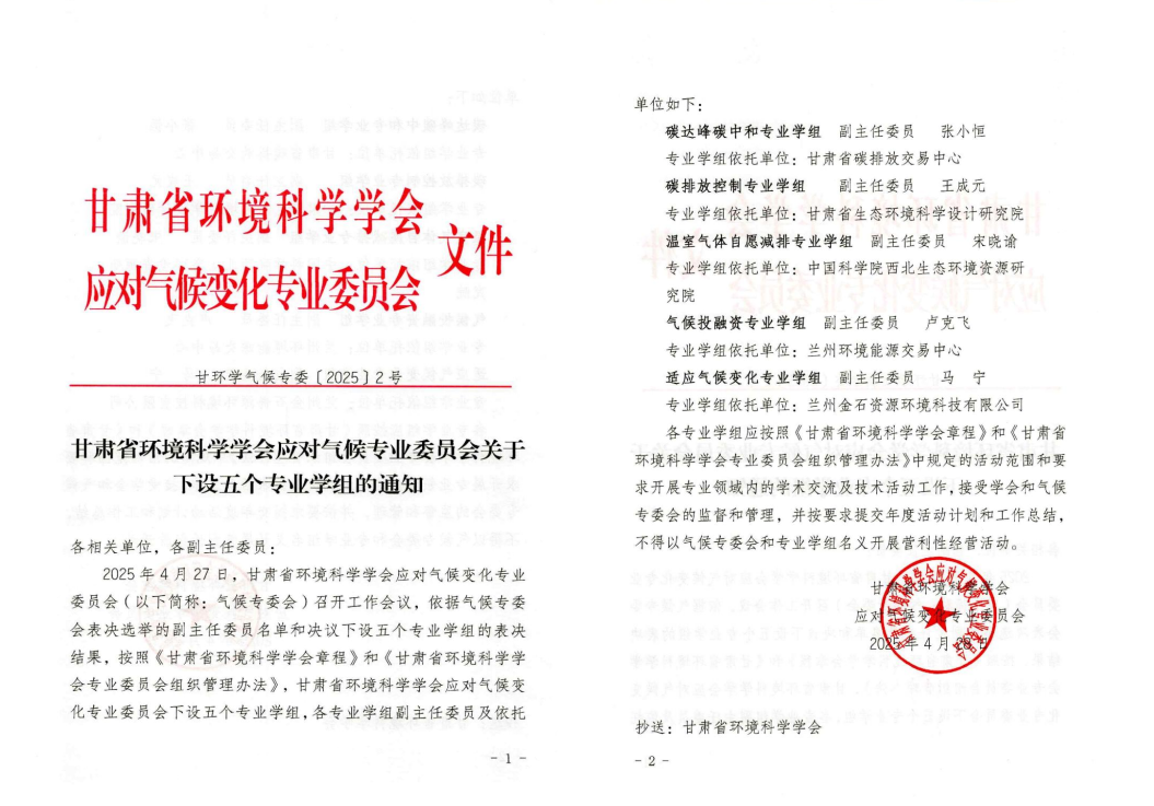 我公司獲選甘肅省環(huán)境科學學會應(yīng)對氣候變化專業(yè)委員會副主任委員單位